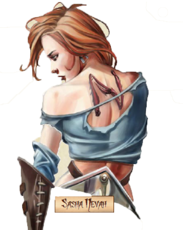 Sasha Nevah: This red-haired human boarded the Jenivere in Ilizmagorti. Since leaving Mediogalti Island, the woman’s somber demeanor has gradually faded, revealing a boisterous and optimistic personality. None have yet questioned her about her missing left pinky finger.