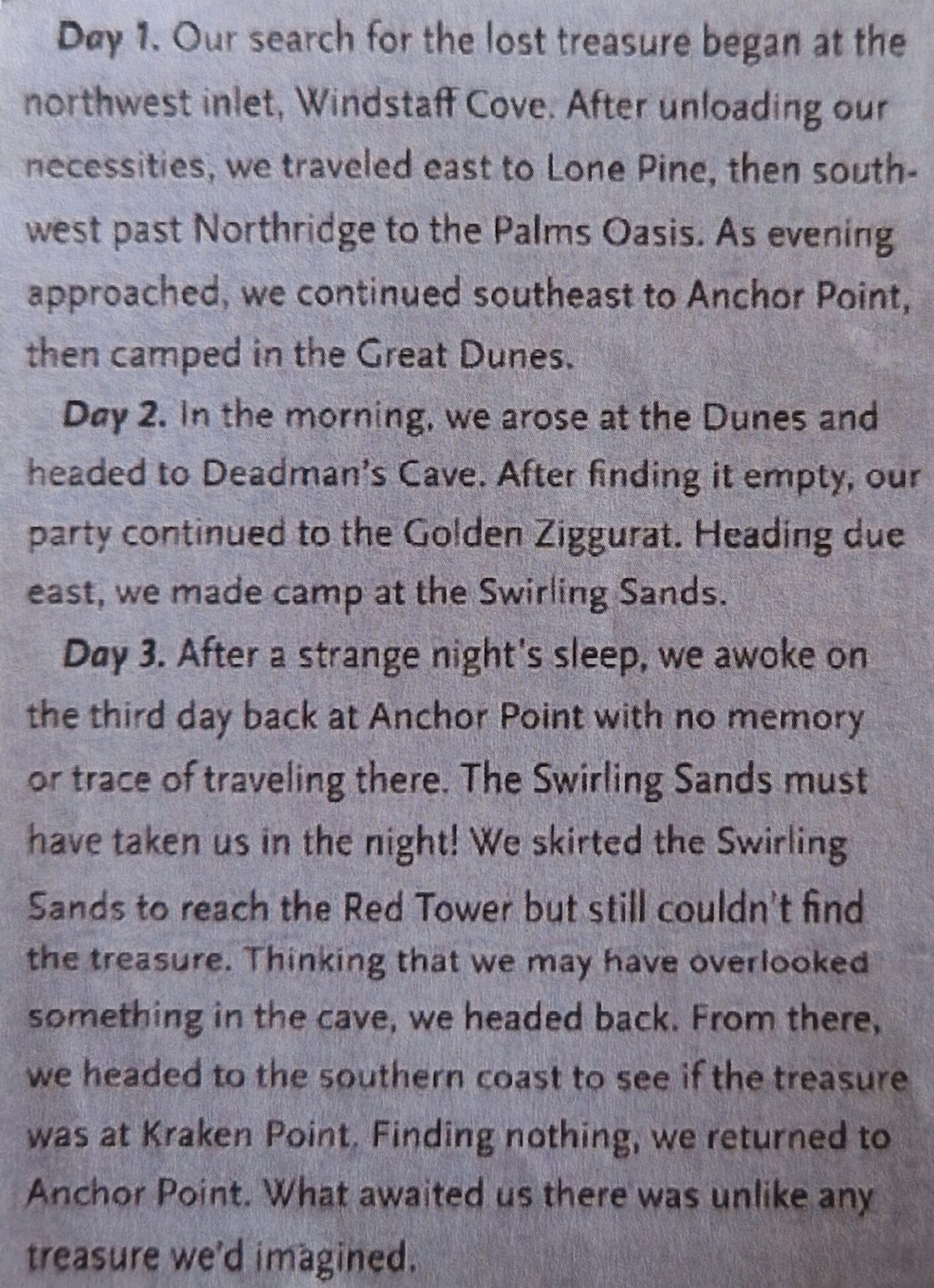 Overall, we have collected valuable artifacts and information. We are excited about what other discoveries we may uncover in our adventure.