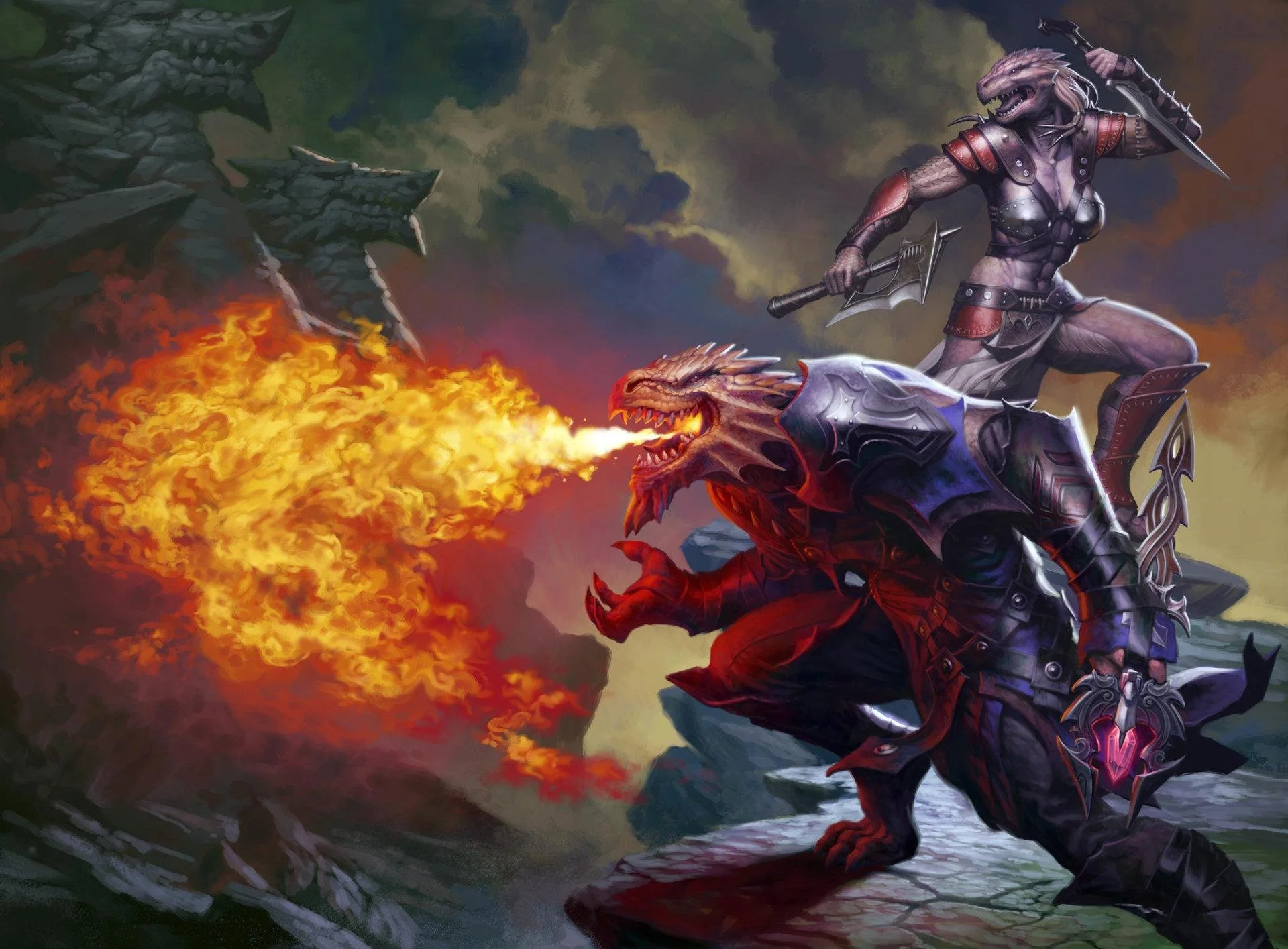 Dragonfolk do not usually become cavaliers. Mounts are often not comfortable with dragons on their backs. However, there are dragonriders, who ride drakes into battle. (Not suitable for player characters.)